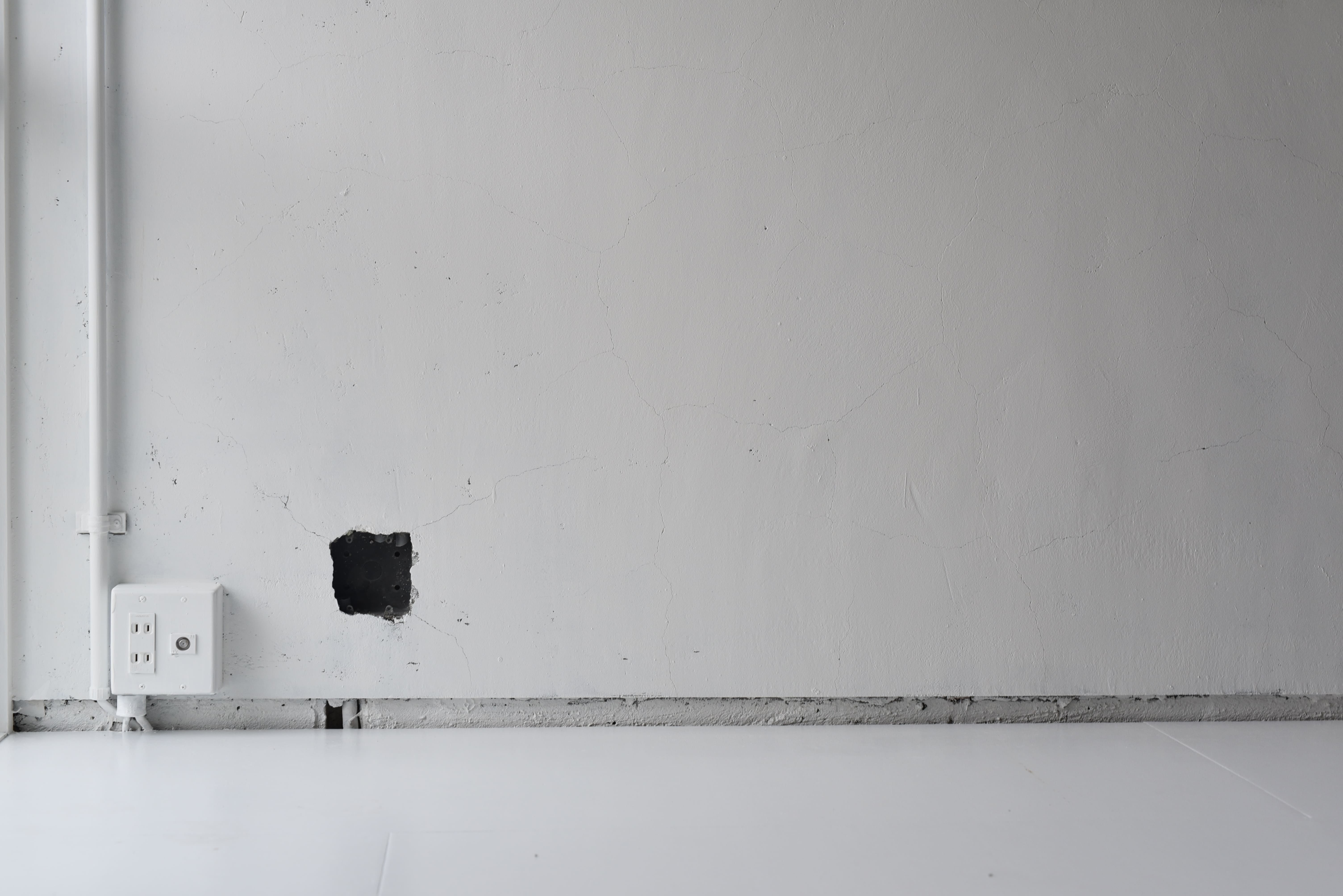 apartment oguriのどまんなか。203号室が小さなギャラリー空間となりました。広さ1Rの小さな白いハコ。愛媛で1番小さなギャラリーなのではないでしょうか。ギャラリーとは呼んでいますが、まだまだ、設備も環境も整っていない只々、床、壁、天井が白いだけの小さな空間です。